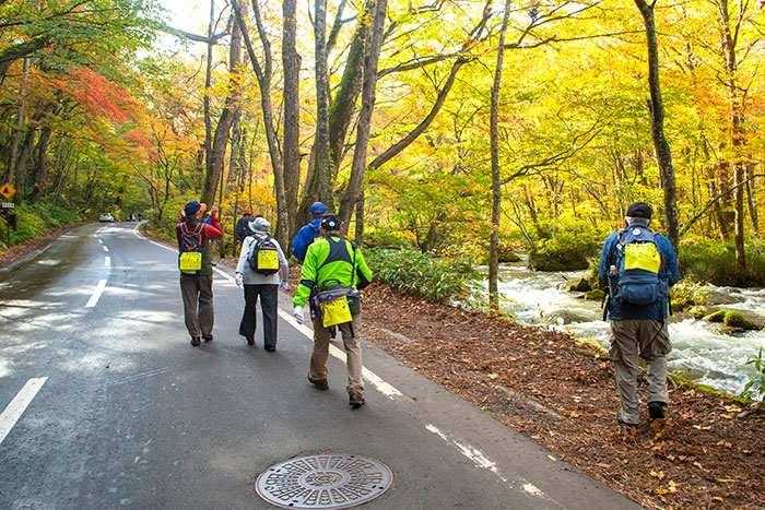 奥入瀬渓流14km(三里半)を歩いた後、遊覧船に乗船し、ゴールの休屋を目指すイベントです。